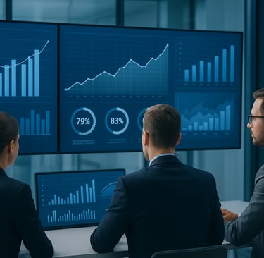 Dashboards para monitoramento de contratos, análise de desempenho de equipes e redução de falhas operacionais.