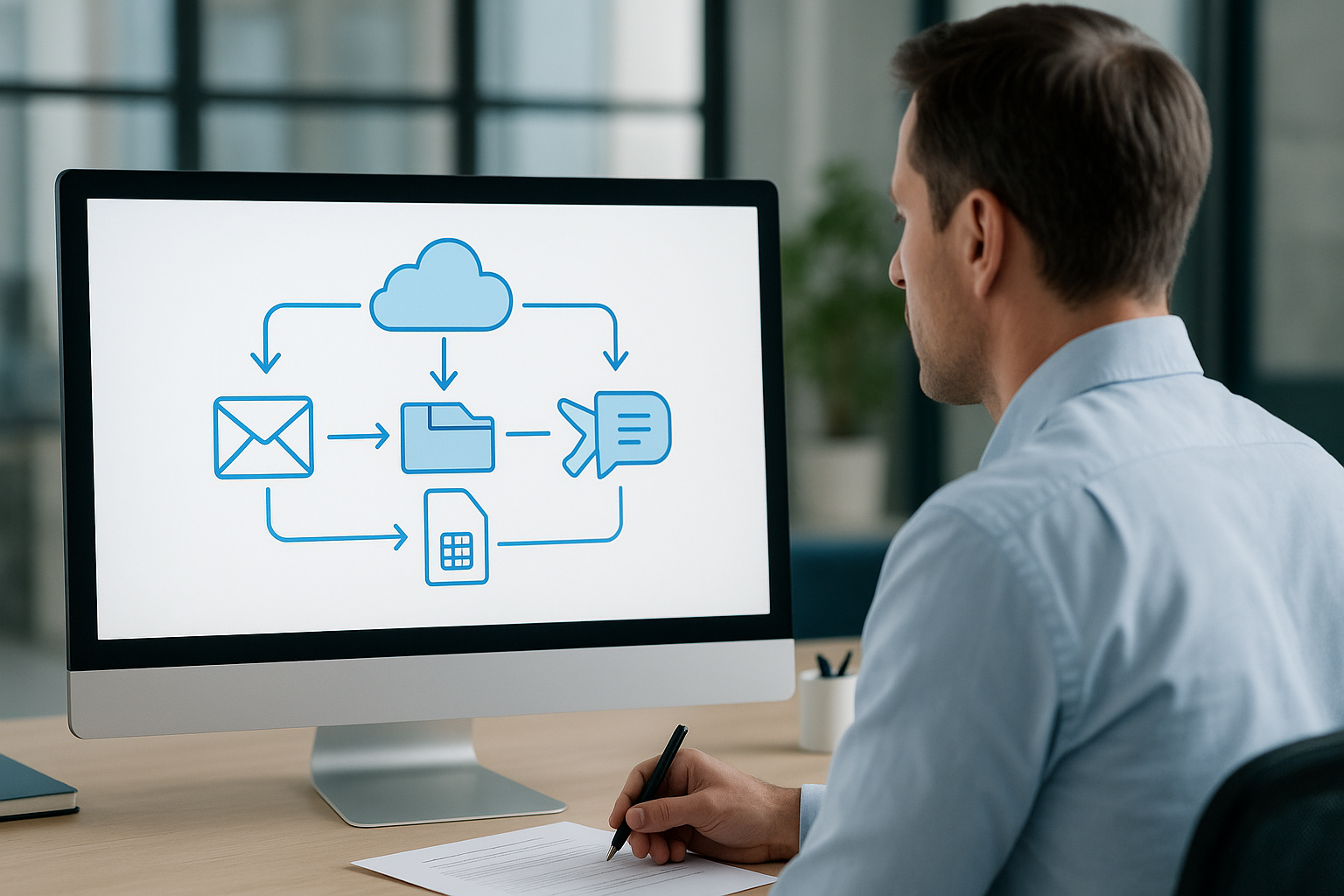 2. Defina ações automáticas (enviar mensagem, mover arquivo, atualizar CRM)